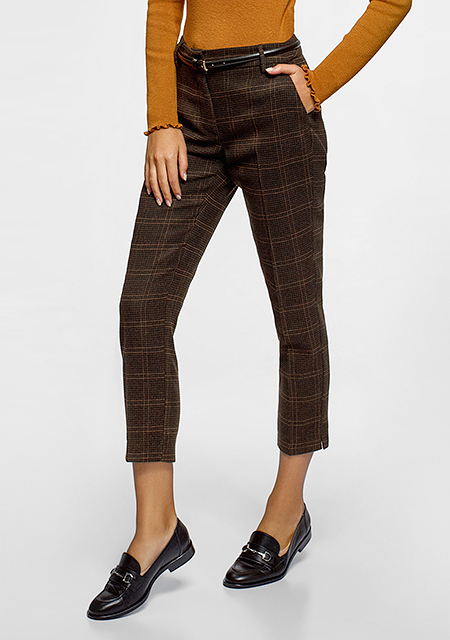 Штаны сочетаются с белой блузой, приталенной футболкой и вязаным свитером. Дополните комплект одежды стильными аксессуарами: серьги, броши, клатч или часы. Аккуратный образ — ключ к успеху. Подбирайте брюки под свои параметры и притягивайте взгляды.